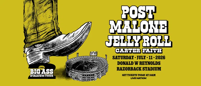 FAYETTEVILLE, Ark. (Via Kyle Parkinson of Arkansas Athletics)- Nine-time diamond-certified global superstar Post Malone and seven-time Grammy nominated entertainer Jelly Roll are set to return to the road with Post Malone and Jelly Roll Present: The BIG ASS Stadium Tour Part 2, continuing the momentum of their record-b…
