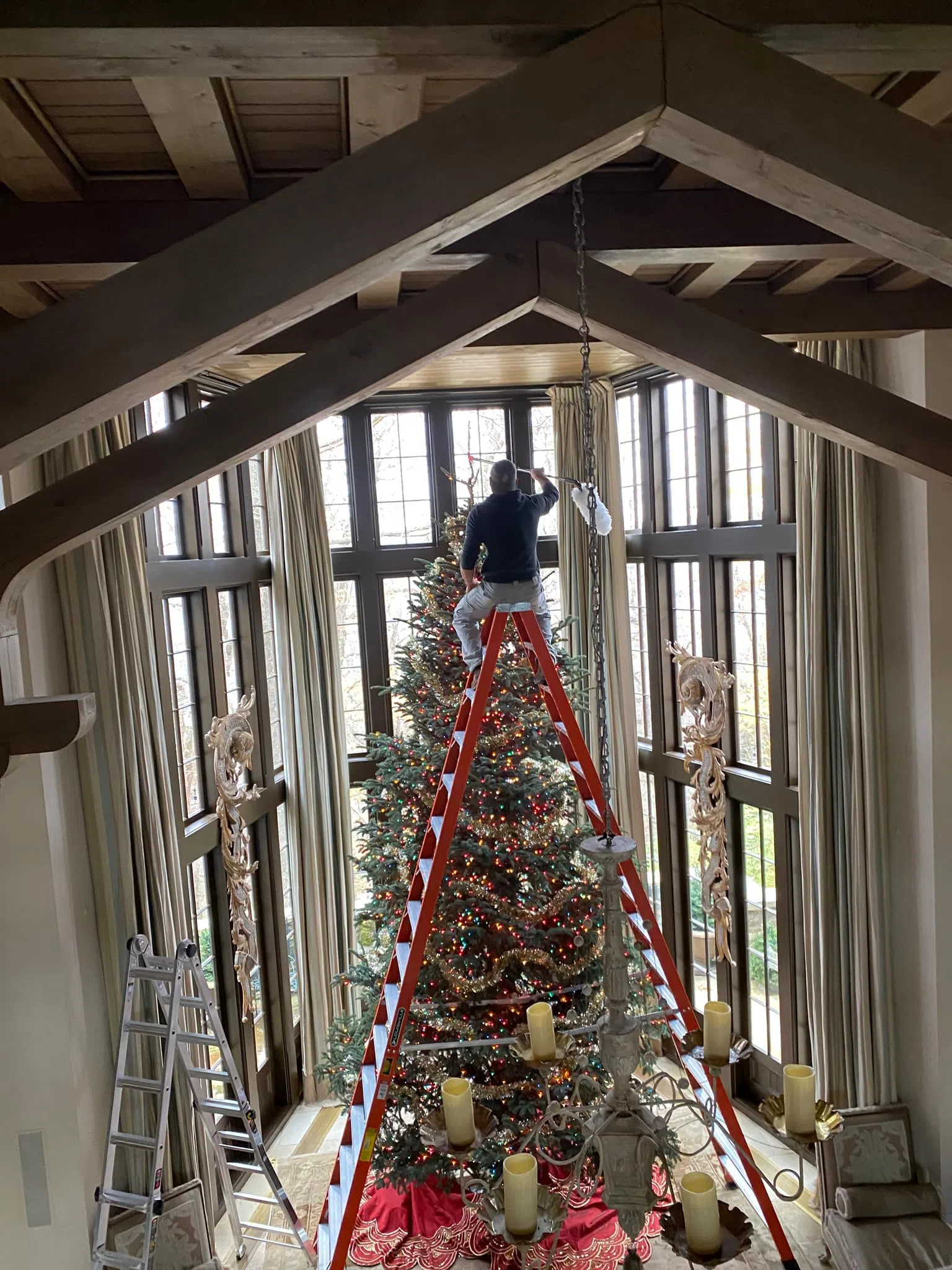 To celebrate everyone being home, Tim got the biggest Christmas tree ever! He shared pictures of the decorating process on social media…