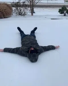 But now that has turned into a snow week, and here he is doing snow angels…